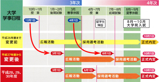 日本的大學生在大二時期就開始尋找自己的畢業之路,順利錄取的人得到自己夢想企業的登機證,其他沒有那麼幸運的人,在時間緊迫的壓力下, 為了求有而被迫選了不是自己理想的企業。